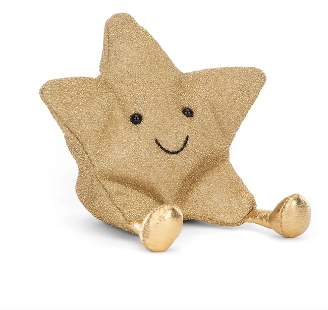 Someone’s scrambled down from the tree to say a sparkly hello! Amuseable Star is a dizzy dreamer who loves to waggle those shiny gold boots! With gorgeous glimmering old-gold fur, a beany bottom and huggable arms, this scrumptious star does one cosmic jive!