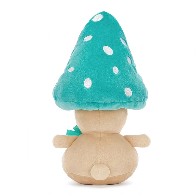 Fun-Guy Bertie is so very round, like a tiny oatmeal pumpkin! This cheery chum wears a squishy statement cap in bold mint fur with stitchy speckles! Sashaying about in a swish satin bow, this mushroom matey has earned a rest! Put up those pointy boots and flump down under a tree!